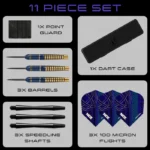 性能を追求し、スタイルを追求して設計されたこれらのダーツは、見事なツートーンのロイヤルブルーとゴールドの仕上げが特徴で、その性能と同様に際立った存在感を放ちます。"