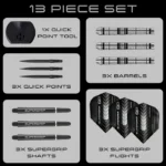 HARROWSの代名詞でもあり、世界中のプレイヤーから信頼されるスーパーグリップが、クイックポイント技術の発表により新時代 へ突入します。 バレル全体にわたり、精密に設計された深いリングカットとダブルリングカットを施し、究極のコントロール性と一貫性を約束するとい うスーパーグリップのコンセプトを体現。 この先進的なグリップ構造が比類なき感触を実現し、ゲーム中の極限のプレッシャー下でも確かな操作性と正確なリリースを保証し ます。